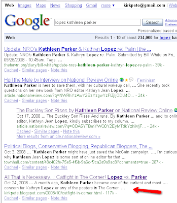 It turns out that if you Google “lopez kathleen parker” (as someone from Houston did earlier this afternoon), my humble blog shows up as the fifth result.